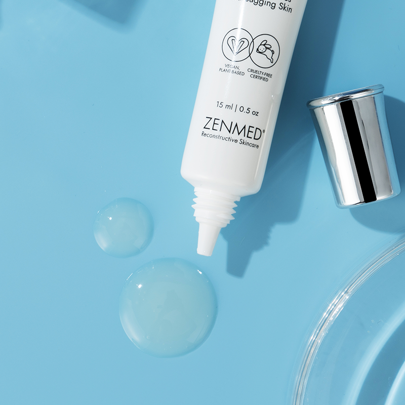 Age, tiredness, and genetics make the skin around your eyes start to weaken, making collagen supports diminish and eyelids can even start to droop. Special anti-aging peptide Matrixyl tightens this delicate skin, lifting it. Caffeine helps smooth and firm to reduce the look of puffy, tired eyes. Light, fast absorbing microdelivery formulation ideal for all skin types. Safe for sensitive eyes. Non-comedogenic, oil-free, works with all ZENMED products.