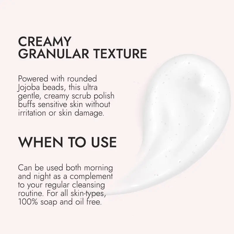 Your skin is sensitive, we get it. What we have created is a microfine exfoliating cream scrub made specifically for those of us who cannot just use any old scrub on our skin. Our Exfoliating Cream Polish is what happens when you blend a rich, creamy cleanser (soap-free) with the microbuffing qualities of rounded Jojoba beads. A sumptuous, whipped texturizing scrub for even the most sensitive of skin types.